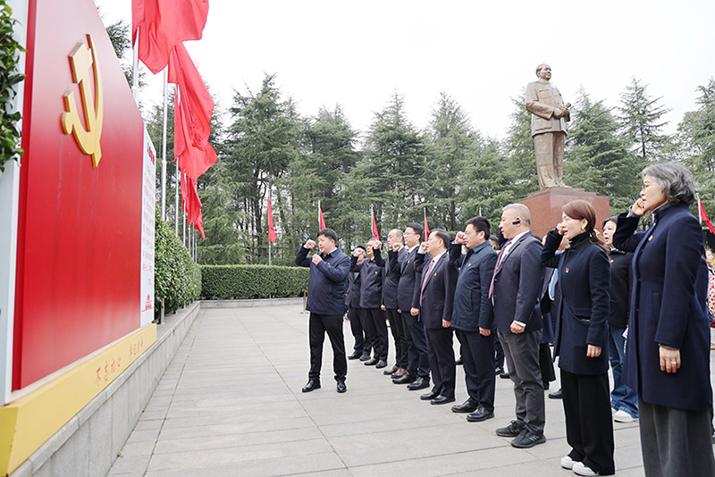 上午10时,活动在毛泽东广场庄严启动。全体人员整齐列队、神情肃穆,向毛主席铜像敬献花篮。公司领导缓步上前,悉心整理花篮缎带。全体党员向伟人铜像深深三鞠躬,并绕行瞻仰,以最崇高的敬意缅怀一代伟人的丰功伟绩,寄托无限追思。在鲜红党旗下,全体党员高举右拳,庄严重温入党誓词,铿锵誓言回荡广场,进一步坚定了对党忠诚、为党尽责、为民服务的初心与使命。