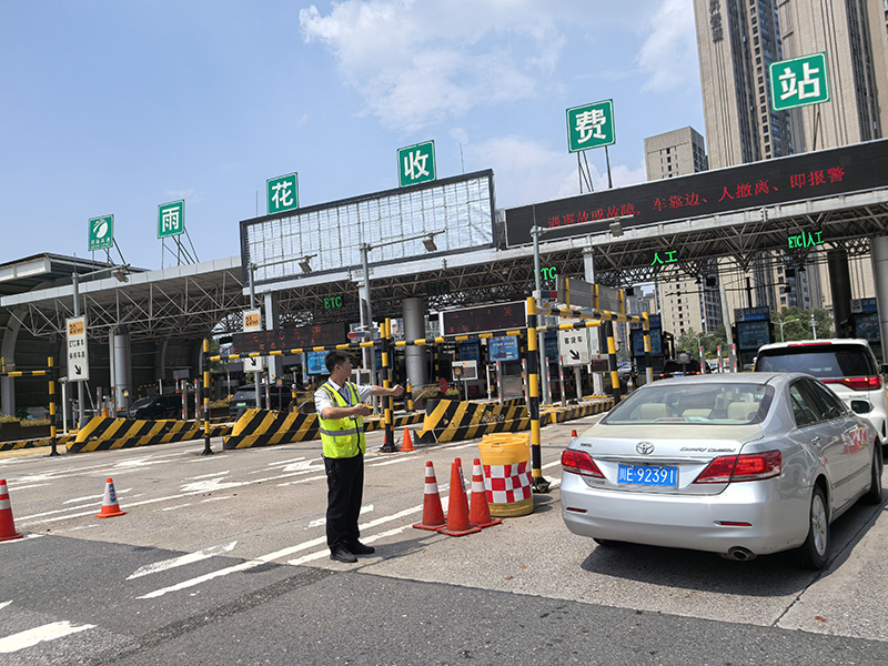 室外温度已悄然跃至40度,地表温度飙升至60℃之上。高温并未削减司乘朋友的出行热情,雨花收费站的车流量仍然远超以往。