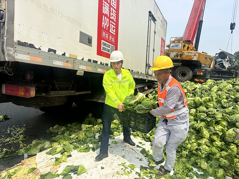 炎炎夏日,地表温度直逼70℃,高速公路上车辆爆胎、抛锚、事故大量增加。上午10点,一辆载满蔬菜的货车在溆怀高速怀化段发生事故,车上所载的蔬菜散落一地,占用了超车道和行车道。路管员李源不顾高温,冒着酷暑,积极帮助司机收拾一地的蔬菜,同时招呼养护人员一起帮助司机把散落的蔬菜收集装袋,力所能及帮司机减少损失。