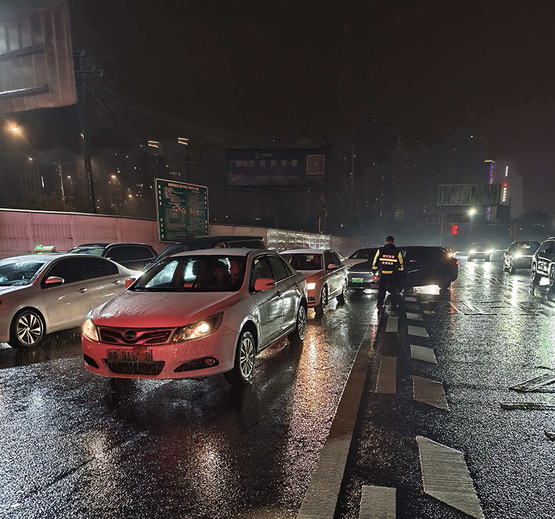 直到晚上八点,车流才慢慢散去,细雨中的当班人员才相视一笑——畅通无阻,就是他们最好的“勋章”。