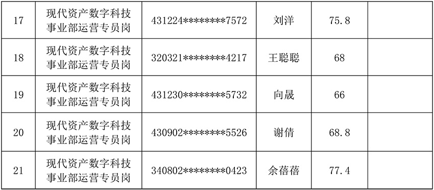 湖南现代资产经营有限公司2025年公开招聘部分岗位面试已完成,现将成绩予以公示。